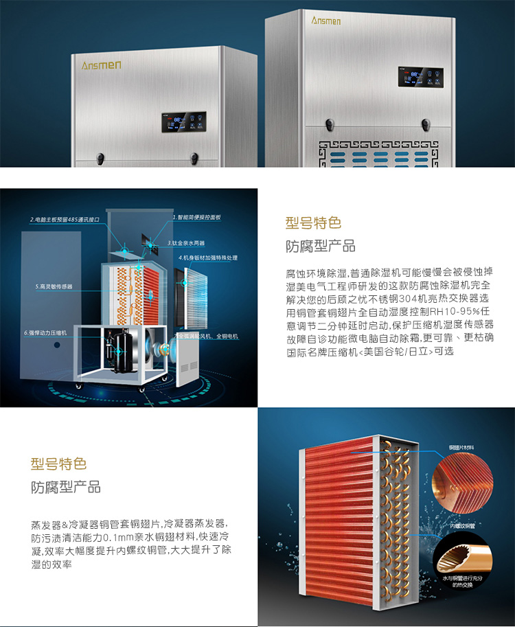 安詩曼是專業(yè)防腐除濕機生產(chǎn)廠家,主要產(chǎn)品有工業(yè)除濕機,高溫烘干機,轉(zhuǎn)輪除濕機,低溫除濕機,吊頂除濕機,商用抽濕機,商用除濕機,工業(yè)抽濕機,工業(yè)干燥機等產(chǎn)品